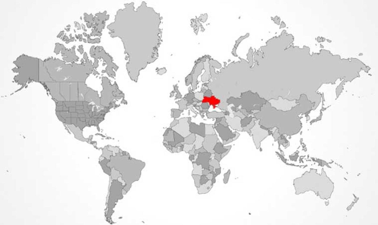 Ukraine is located in Eastern Europe. The country regained its independence in 1991, following the dissolution of the Soviet Union. Ukraine suffers from a high poverty rate as well as severe corruption. However, because of its extensive fertile farmlands, Ukraine is one of the largest grain exporters in the world.